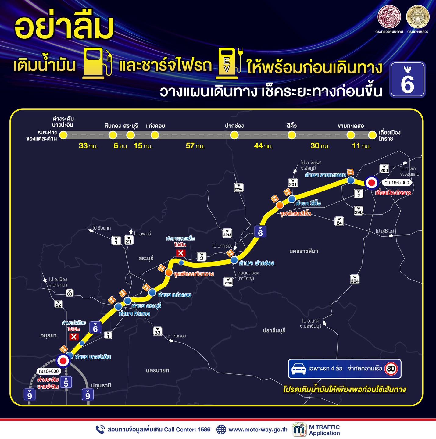 👉โปรดสังเกตป้ายบอกทางหมายเลข 6️⃣ และขับขี่ด้วยความระมัดระวัง❗อย่าลืม เติมน้ำมันและชาร์จไฟรถให้พร้อมก่อนเดินทาง